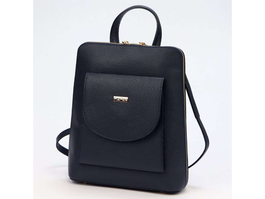 Středně velký batoh z přírodní italské hovězí kůže s výrazným vzorem zrna. Batoh má jednokomorovou strukturu s podšívkovou přihrádkou zapínanou na zip. Vnitřek je vybaven kapsou na zip a kapsou na telefon. Na přední straně batohu je další kapsa uzavíratelná klopou s magnetickým patentem. Celé se to zapíná na kovový, dvoucestný zip. Na zadní straně tašky je další kapsa, zapínaná na zip. Ramenní popruhy batohu lze znovu připevnit a vytvořit tak jeden dlouhý popruh, který umožňuje nosit batoh jako tašku přes rameno. Dno batohu je vyztuženo a opatřeno kovovými nožičkami, které zabraňují deformaci jeho tvaru a poškození kůže.