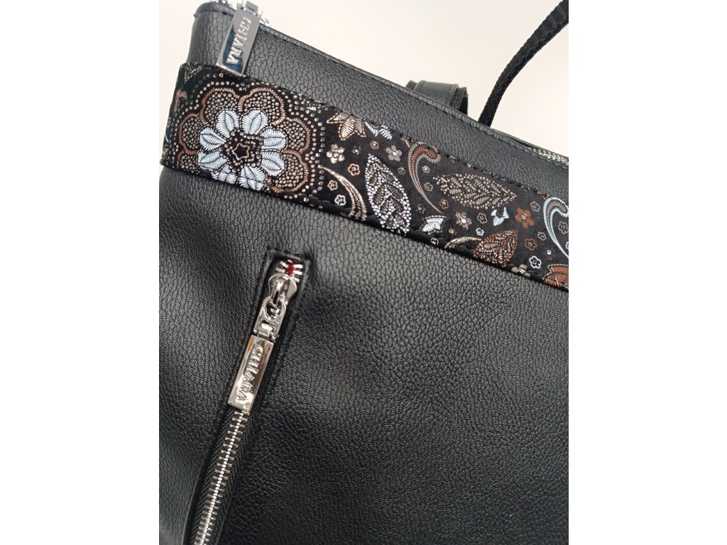 Dámský syntetický odlehčený batoh Chiara Dynamo v černé barvě s ornamenty