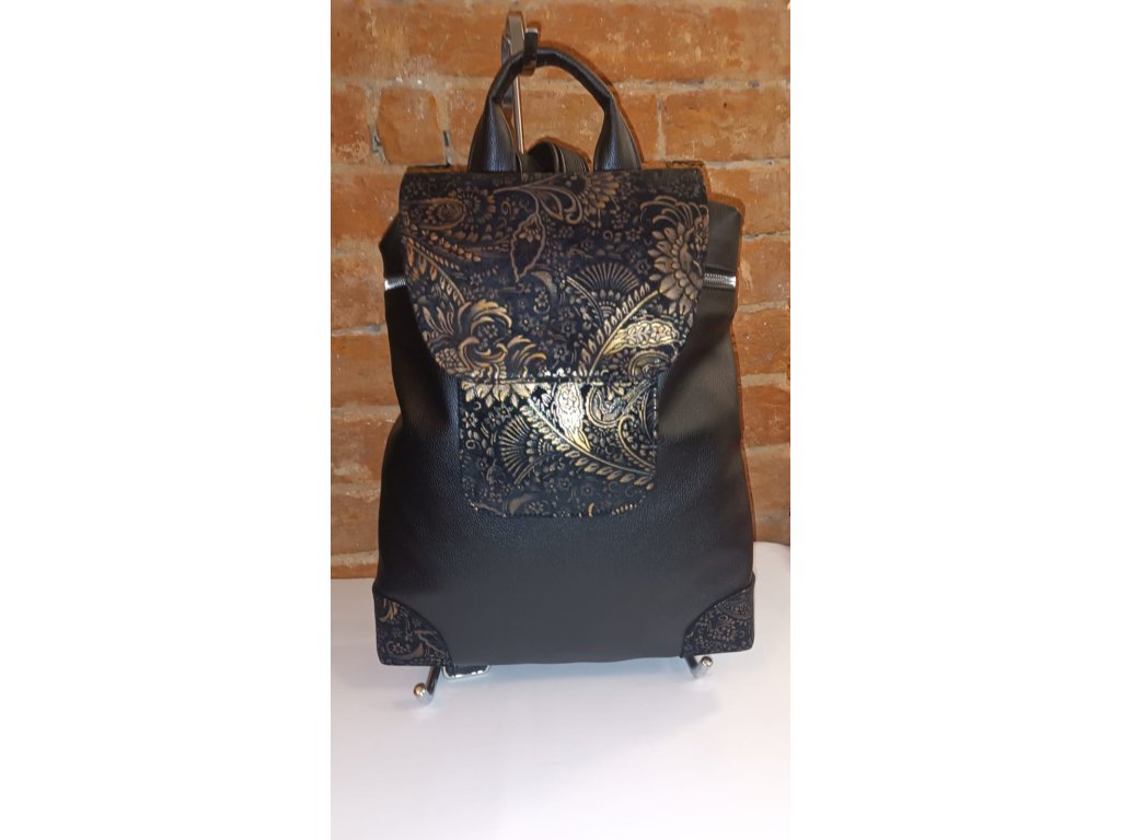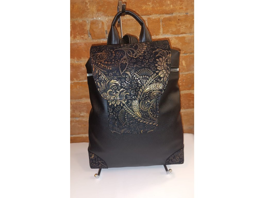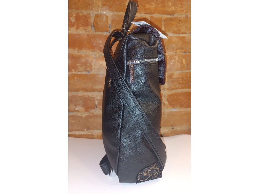 Dámský syntetický odlehčený batoh Chiara Virgo v černé barvě se zlatým ornamentem U