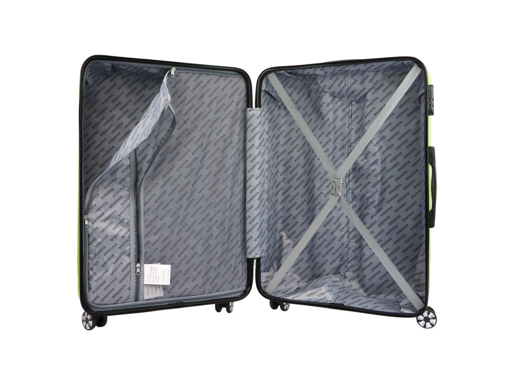 Kufr je vybaven čtyřmi dvojitými kolečky otočnými o 360°, vysouvací rukojetí s gumovým držadlem pro snadnou manipulaci a bezpečnostní kombinační zámek, který zabrání neoprávněnému přístupu dovnitř. Uvnitř najdeme dvě komory. V jedné je prostor s pružnými popruhy tvaru X, které zabrání pohybu oděvu. Ve druhé je komora uzavřena zipem.