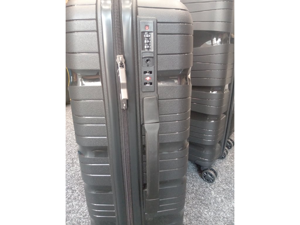 Kufr je vybaven čtyřmi dvojitými kolečky otočnými o 360°, vysouvací rukojetí s gumovým držadlem pro snadnou manipulaci a bezpečnostní kombinační zámek, který zabrání neoprávněnému přístupu dovnitř + TSA (letištní) zámek. Uvnitř najdeme dvě komory. V jedné je prostor s pružnými popruhy tvaru X, které zabrání pohybu oděvu. Ve druhé je komora uzavřena zipem.