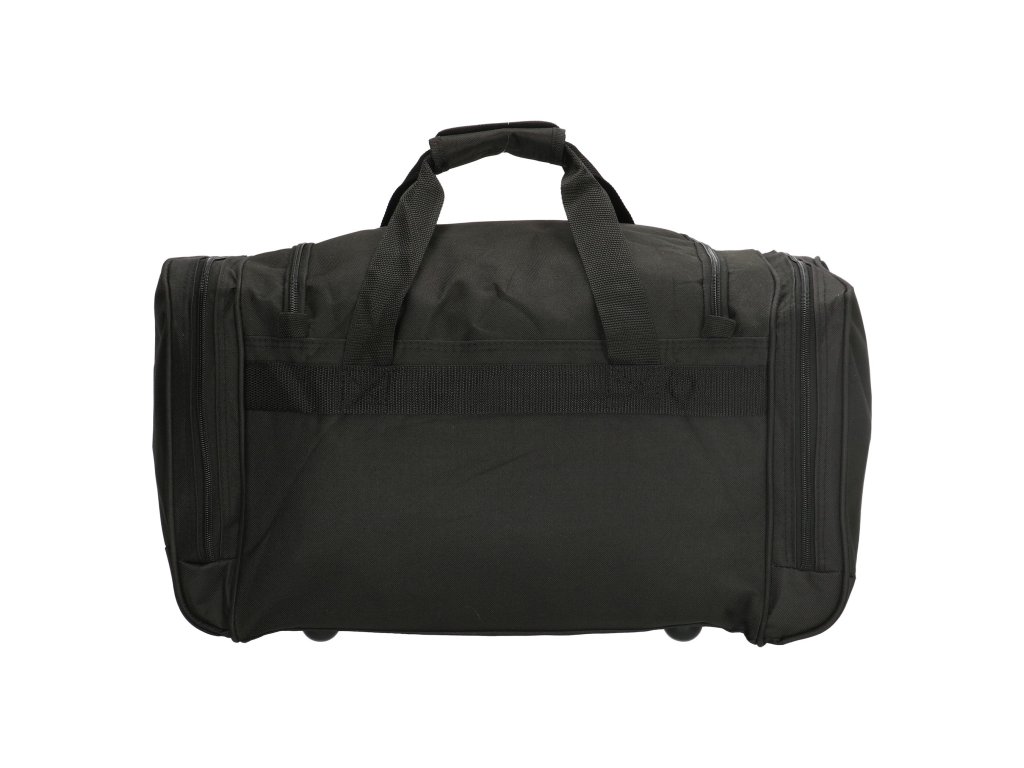 Cestovní a sportovní taška Enrico Benetti Orlando je vyrobena z odolného polyesteru a ušita tak, že pěkně drží svůj tvar. Tvoří ji jedna hlavní komora, dvě postranní kapsy a jedna kapsa s krytými zipy na přední straně. Hlavní komora se otevírá seshora rovněž pomocí dvou zipů, co se jeví jako velice praktické. Dvě ucha jsou spojitelná přišitým tunýlkem se suchými zipy pro pohodlné nošení. Odepínací nylonový popruh je osazen posuvným, rozšířeným polstrováním v oblasti ramene a spodní vyztužená část osazena čtyřmi tvrdými plastovými půlkulatými nožičkami, zabraňujícími opotřebení. V nabídce jsou tři velikosti. Tato menší má rozměry 55 x 25 x 30 cm a objem 41 litrů.