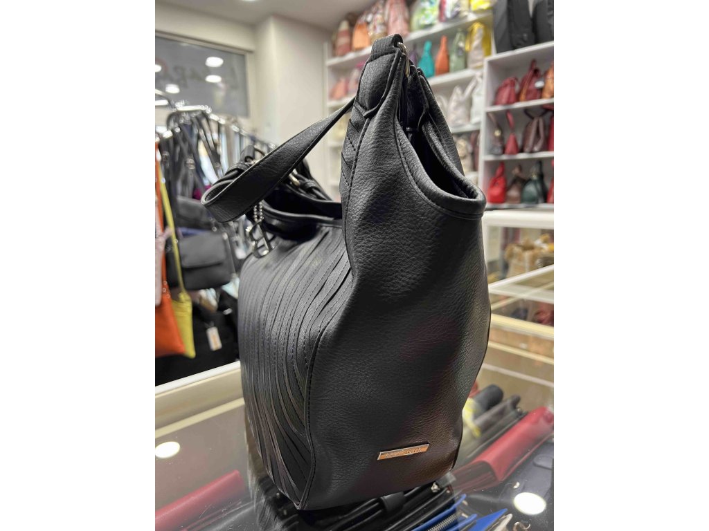 Kvalitní a stylová černá kabelka, kterou musíte mít. Tato kabelka má dvě ucha a velmi pohodlně se nosí v ruce i přes rameno. Uvnitř má tato taška jednu hlavní přihrádku a postranní kapsy. Barva kování této tašky je stříbrná.