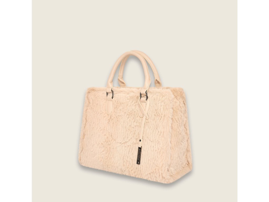 Tato nadýchaná nákupní taška v barvě šampaňského z umělé kožešiny je nádherným doplňkem vašeho šatníku. Tato kabelka má dvě ucha a velmi pohodlně se nosí v ruce. Díky dodatečnému dlouhému (nastavitelnému) a odnímatelnému ramennímu popruhu lze tašku nosit různými způsoby. Uvnitř má taška dvě vnitřní kapsy, z nichž jedna je na zip. Tašku lze uzavřít pomocí zipu. Metalická barva se nazývá „antique brush“ a má mosaznou barvu, jako leštěné zlato.