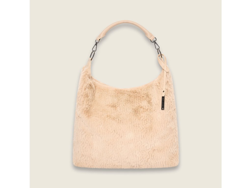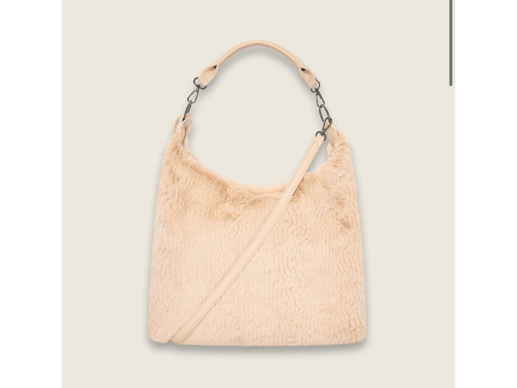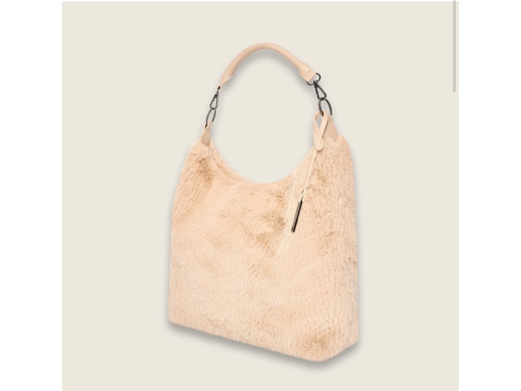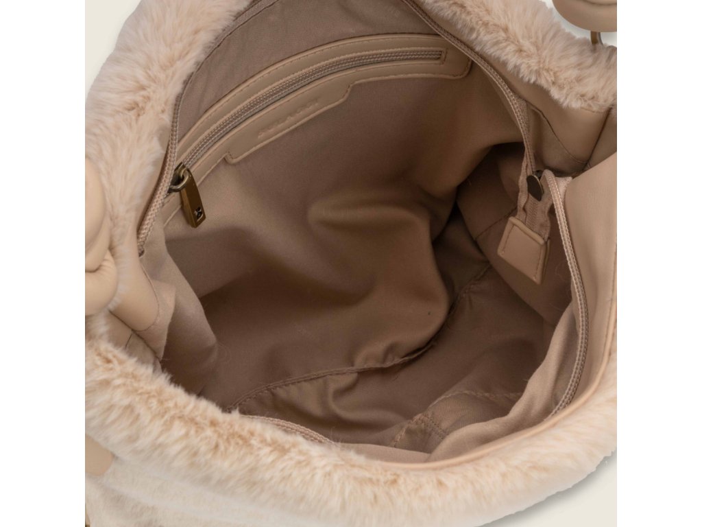 Tento nadýchaný kousek z krémové kožešiny plně odpovídá trendům letošní sezóny. Kabelka má ucho, které lze nosit v ruce nebo na rameni. Díky extra dlouhému a odnímatelnému ramennímu popruhu, který je součástí balení, lze tašku nosit různými způsoby. Uvnitř má tato taška hlavní prostor se třemi vnitřními kapsami, z nichž jedna je na zip. Taška se uzavírá zipem. Barva kovu je zlatá.