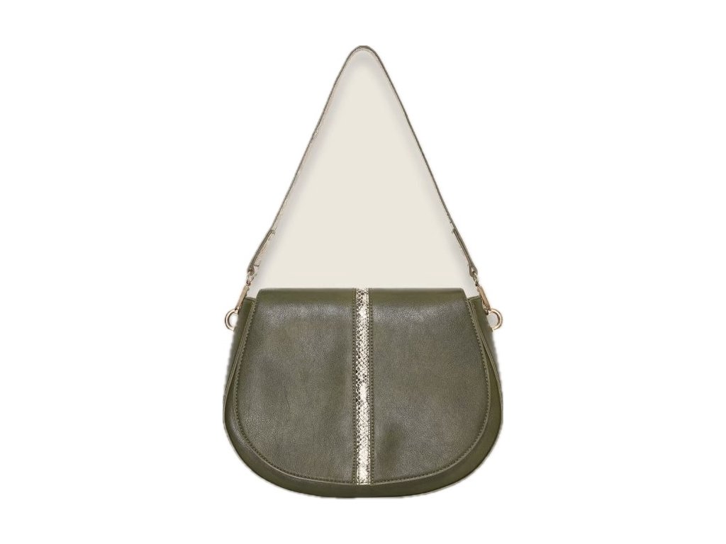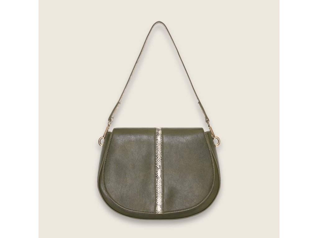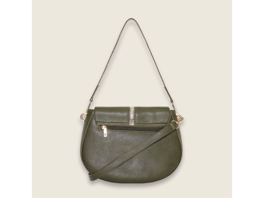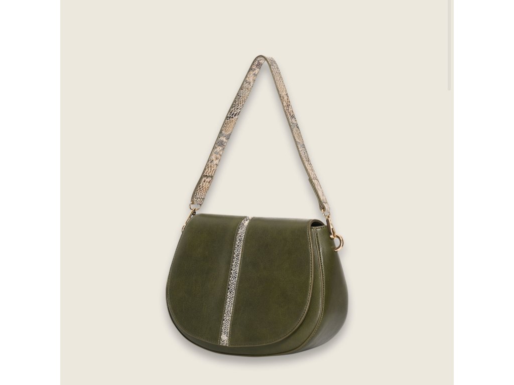 Tato kompaktní khaki taška přes rameno Snake je nadčasová taška, kterou lze použít pro mnoho různých příležitostí. Tato kabelka má jedno ucho, pohodlně se nosí v ruce a lze ji nosit přes rameno. Díky dodatečnému dlouhému (nastavitelnému) a odnímatelnému ramennímu popruhu lze tašku nosit různými způsoby. Uvnitř má taška hlavní přihrádku se dvěma vnitřními kapsami, z nichž jedna je na zip. Taška se zavírá pomocí překlopného víka a patentky.