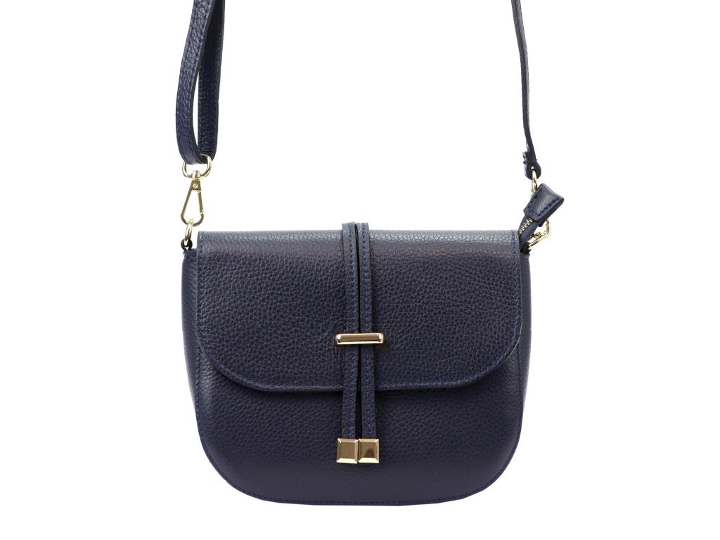 Dámská kožená crossbody kabelka s klopou v tmavě modré barvě