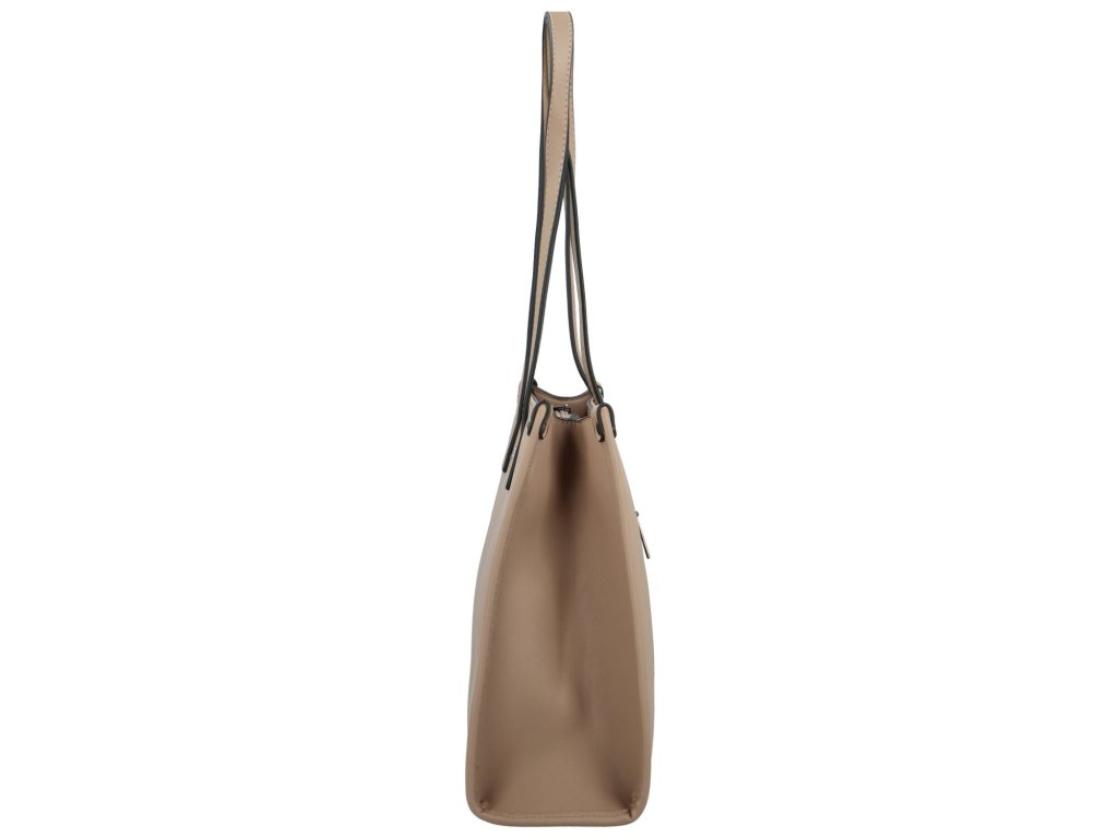 Na zadní straně kabelky také malá kapsa na zip. Decentní logo značky na přední straně.