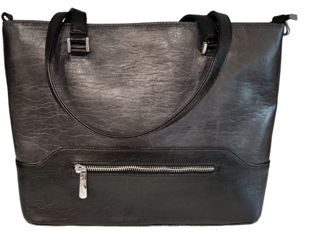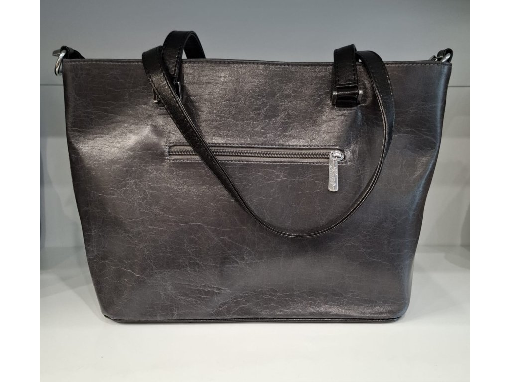 Doplňte outfit stříbrnými šperky a detaily. Kabelka má jednu hlavní kapsu dělenou přepážkou se zipem.