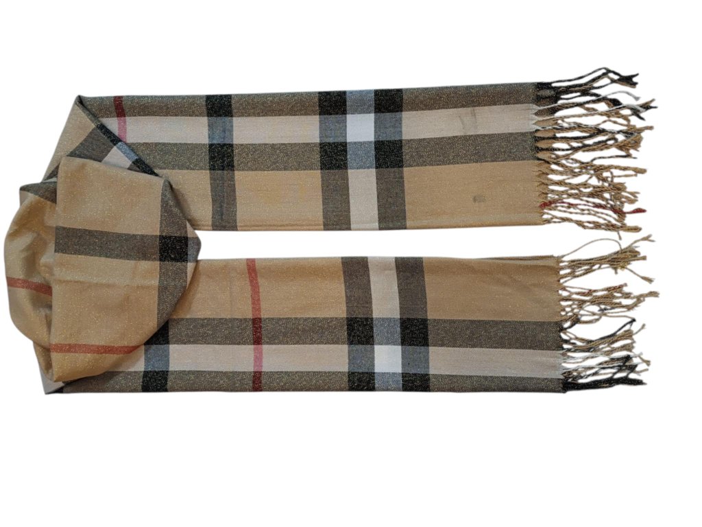 Dámská elegantní šála z kašmíru béžová se zlatou nitkou Z