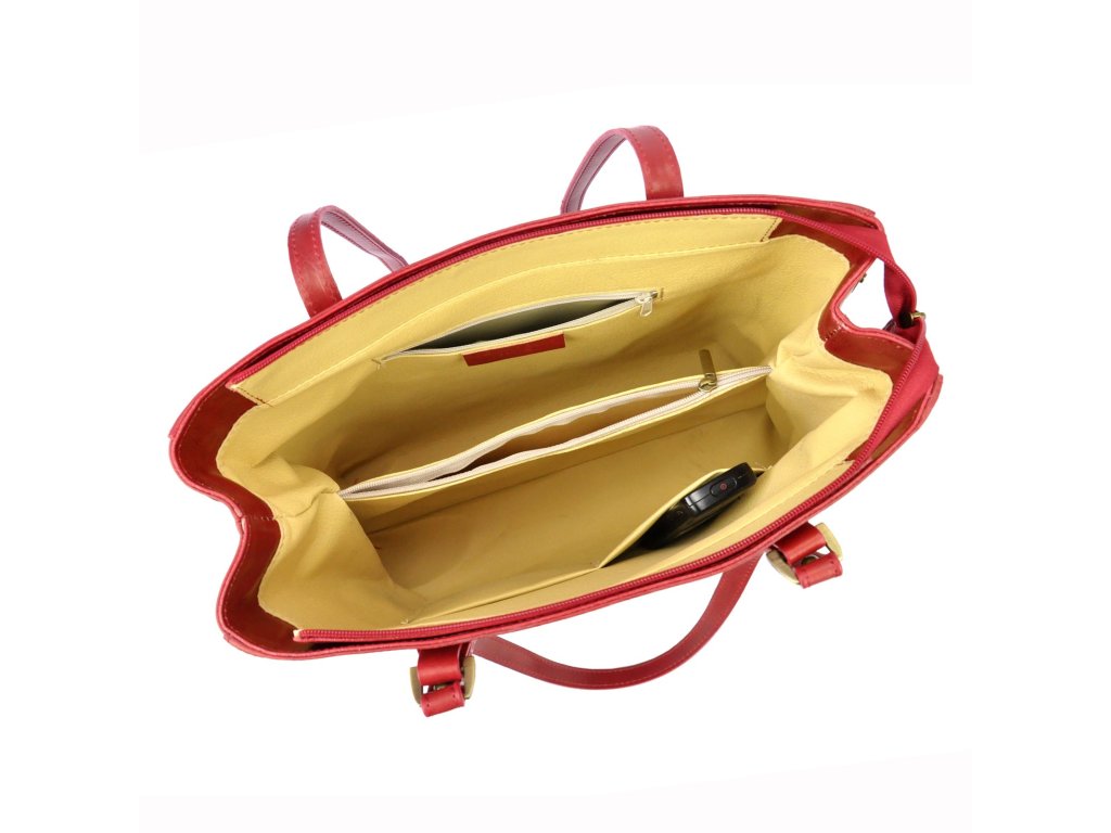 Nádherná a originální Italská kabelka z nové kolekce vás nadchne svým osobitým stylem. Nádherná a originální Italská kabelka vás nadchne svým osobitým stylem. Klasická kabelka vyrobená z přírodní kůže. Kůže je činěna a barvena výhradně přírodními trislovinami a barvivy rostlinného původu. Kabelka má dvoukomorovou konstrukci a je zakončena odolnost podšívkou. Jedna přihrádka má kapsu na zip a druhá dvě kapsy na telefon. Obě přihrádky se zapínání na zipy a mezi přihrádkami je všitá dělící kapsa na zip. Celá taška se zapíná silným zipem. Je navržena pro nošení v ruce nebo na lokti, ale dlouhá ucha umožňují i nošení přes rameno.