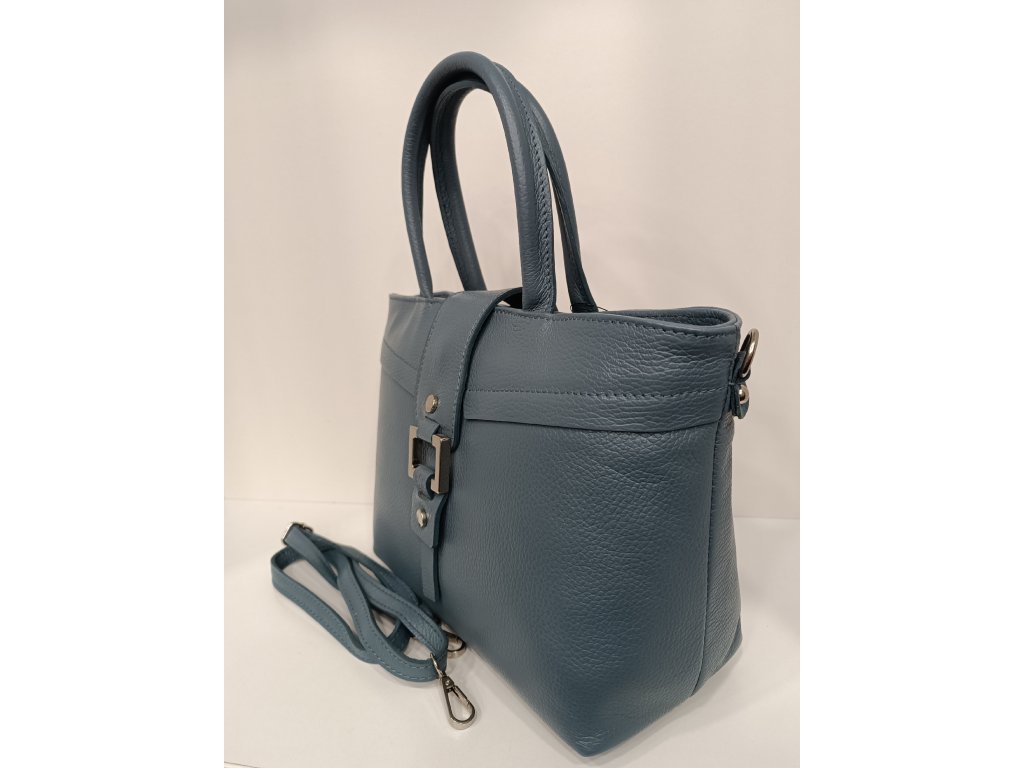 Dámská kožená kabelka Vera Pelle do ruky s popruhem navíc v modré barvě