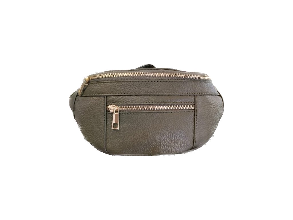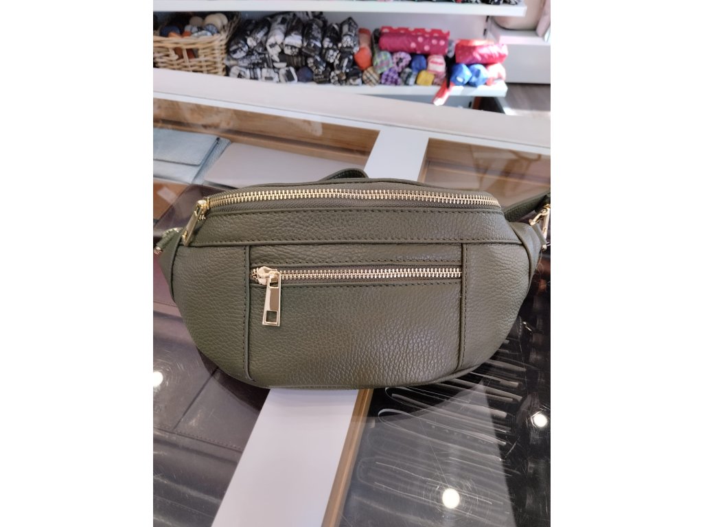Dámská kožená ledvinka - zelená/ zlatý zip