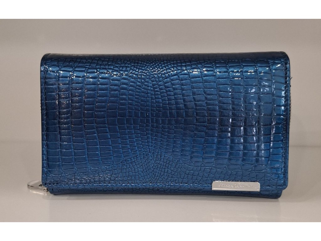 Dámská střední peněženka z lakované kůže v modré barvě s vzorováním Z