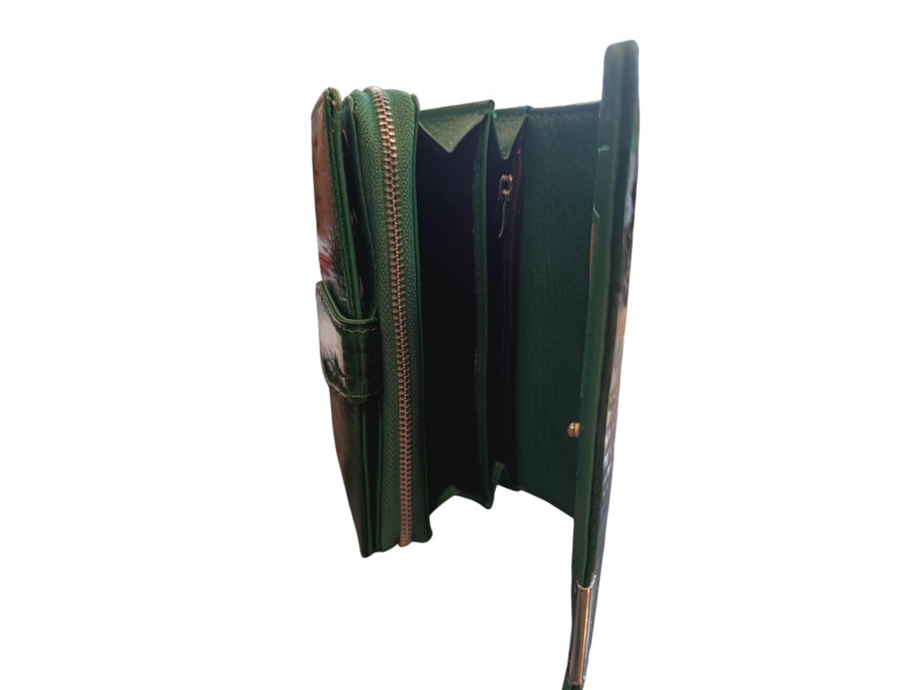 Dámská střední peněženka z lakované kůže v zelené barvě s vzorováním U