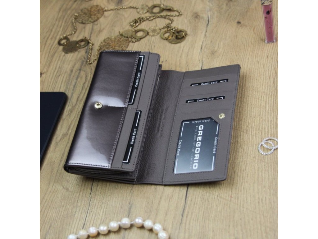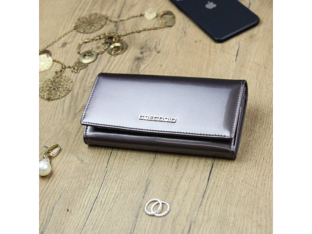 Dámská kožená peněženka Gregorio v lakovaném provedení klasik - šedá/lesk
