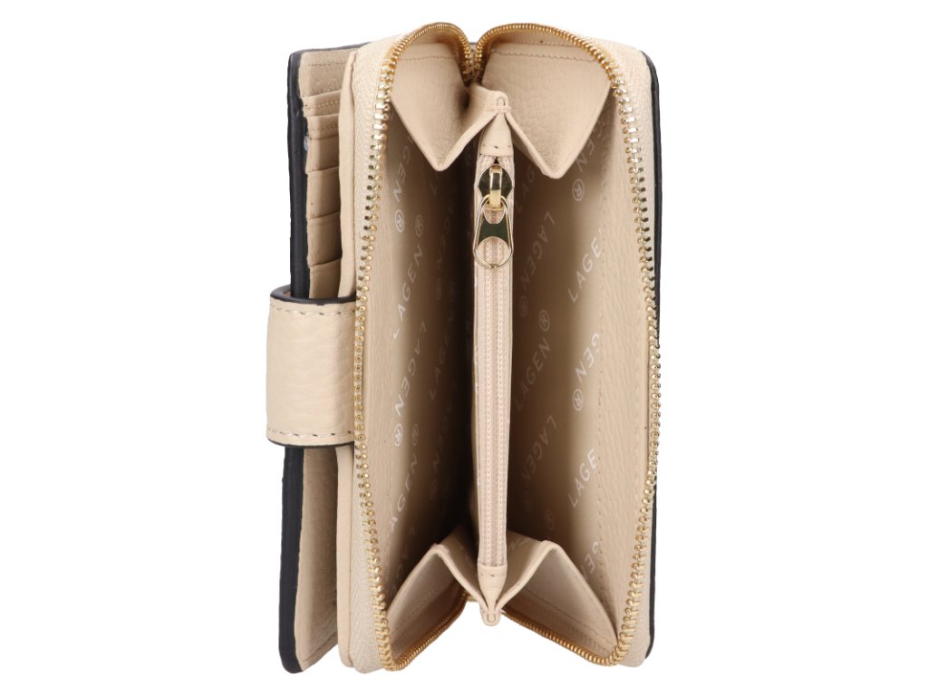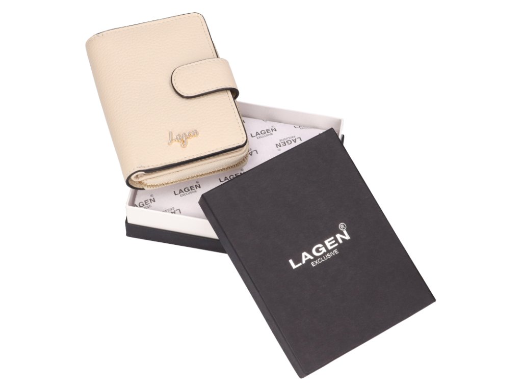 Dámská peněženka kožená Lagen v krémově bílé barvě se zlatým logem U