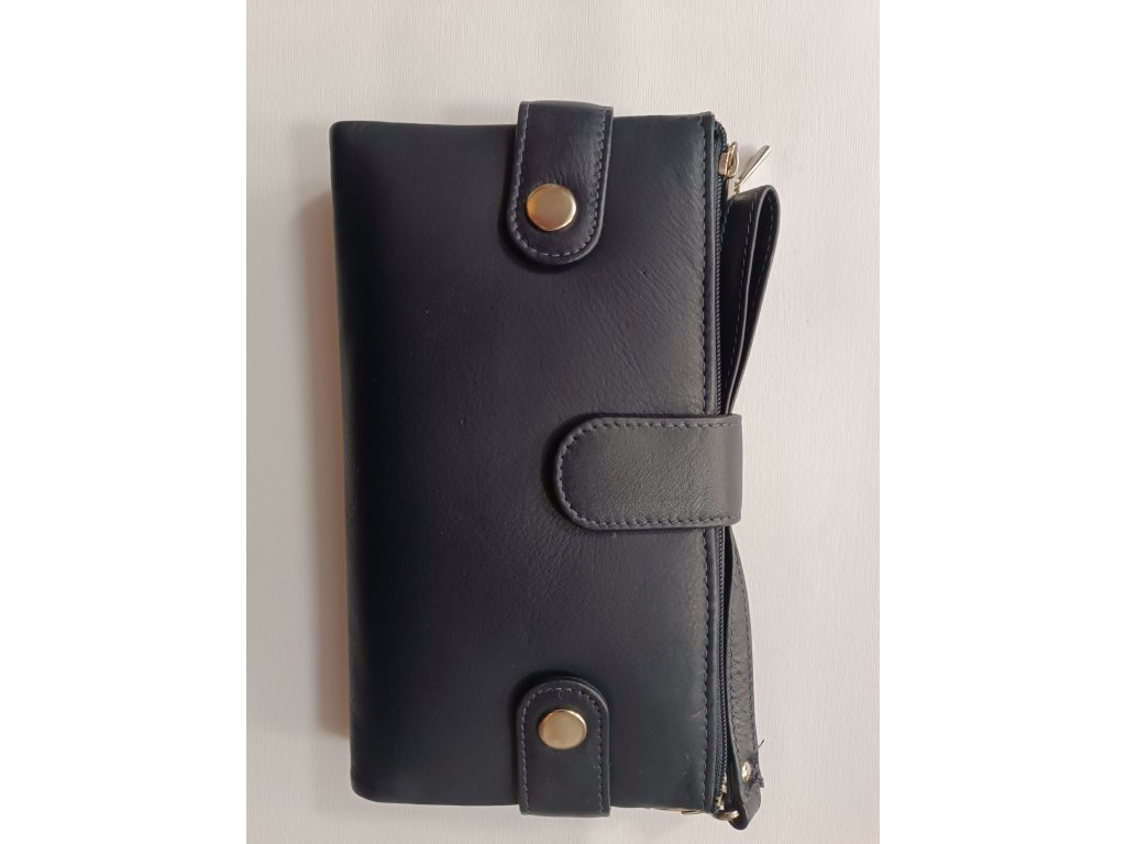 Dámská kožená peněženka Vera Pelle na telefon s poutkem v tmavě modré barvě U