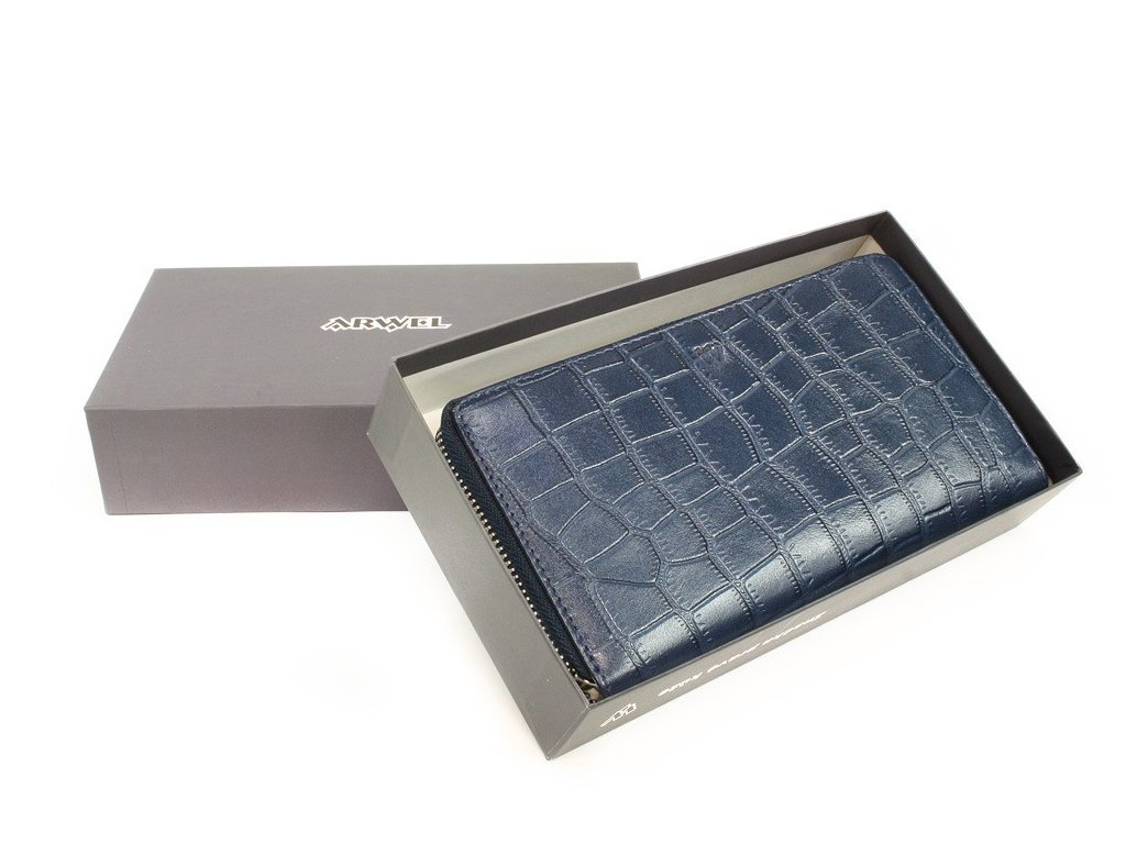 Tmavě modrá croco dámská kožená zipová peněženka
