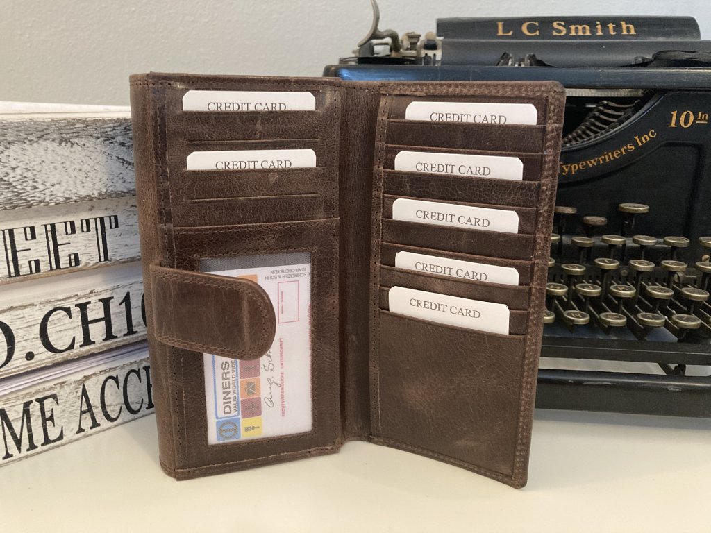Peněženka má uvnitř uspořádání na karty samostatně oddělené na přepnutí.
