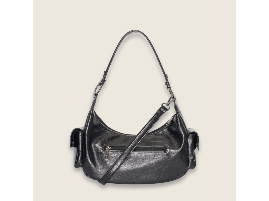 Tato stylová černá taška Crinkle hobo je supermoderní taška, s níž budete v této sezóně naprosto trendy. Tato taška přes rameno má dvojité ramenní popruhy, které se velmi příjemně nosí na rameni. Díky přiloženému ramennímu popruhu lze tuto tašku nosit různými způsoby. Uvnitř má tato taška hlavní přihrádku se dvěma vnitřními kapsami, z nichž jedna je na zip. Taška se zavírá na zip. Kovová barva je tmavá, antracitová.