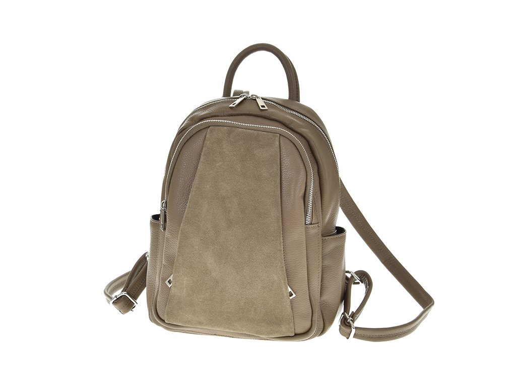 Dámský kožený batoh Laura Biaggi v béžové barvě se stříbrnými doplňky ZU