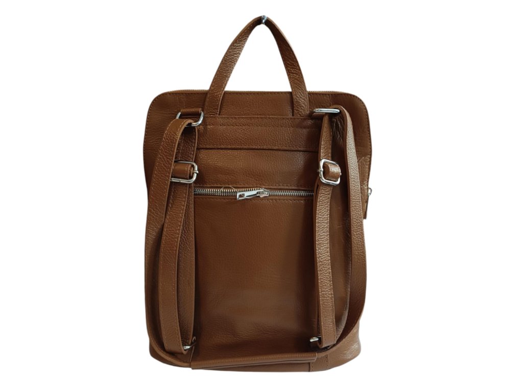 Dámský kožený městský batoh na A4 Vera Pelle v hnědé barvě se stříbrným zipem U