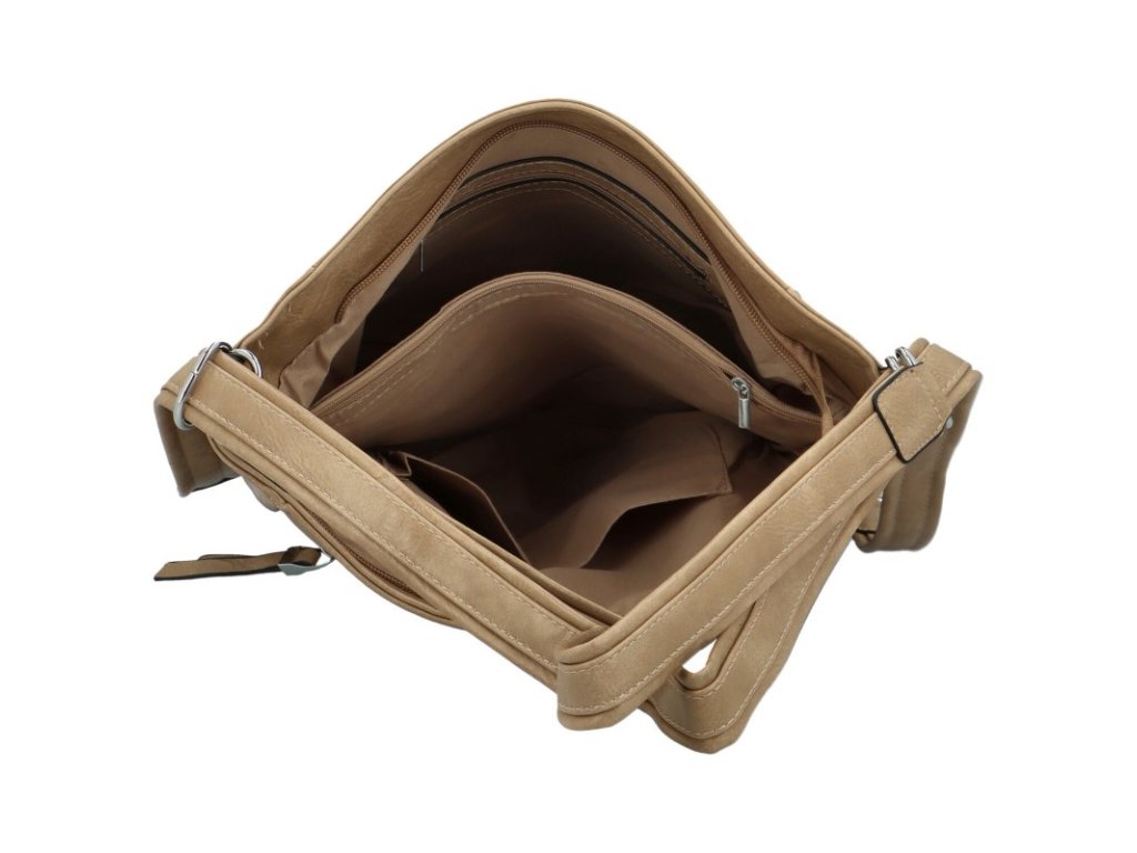 Hlavní kapsa je na zip, uvnitř prostor rozdělen velkou přihrádkou na zip. Nechybí menší postranní kapsy na drobnosti či mobil.