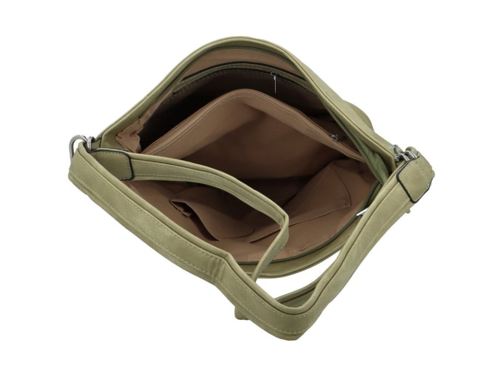 Hlavní kapsa je na zip, uvnitř prostor rozdělen velkou přihrádkou na zip. Nechybí menší postranní kapsy na drobnosti či mobil.