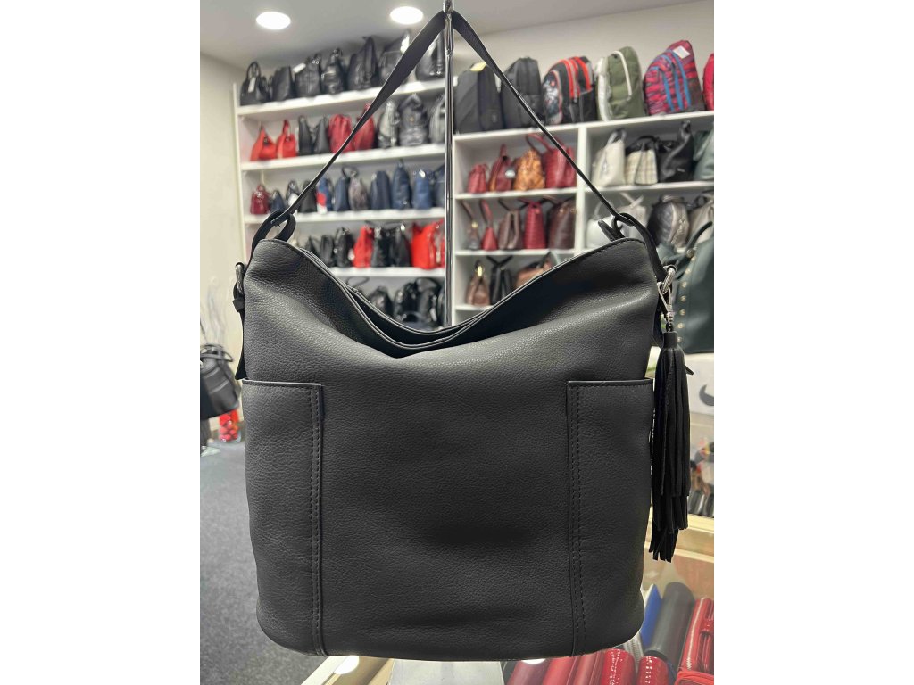 Kabelka se uzavírá na zip, uvnitř v podšívce dvě otevřené kapsičky a zipová kapsa. Vně kabelky menší zipová kapsa a dvě otevřené kapsy po stranách kabelky.