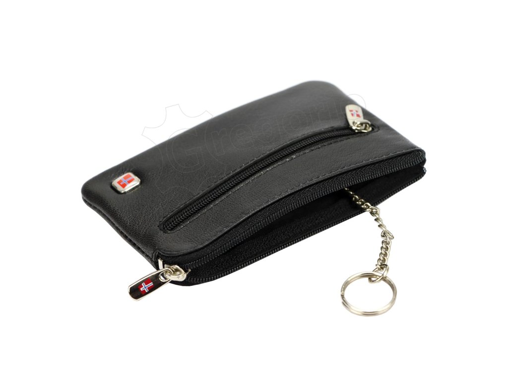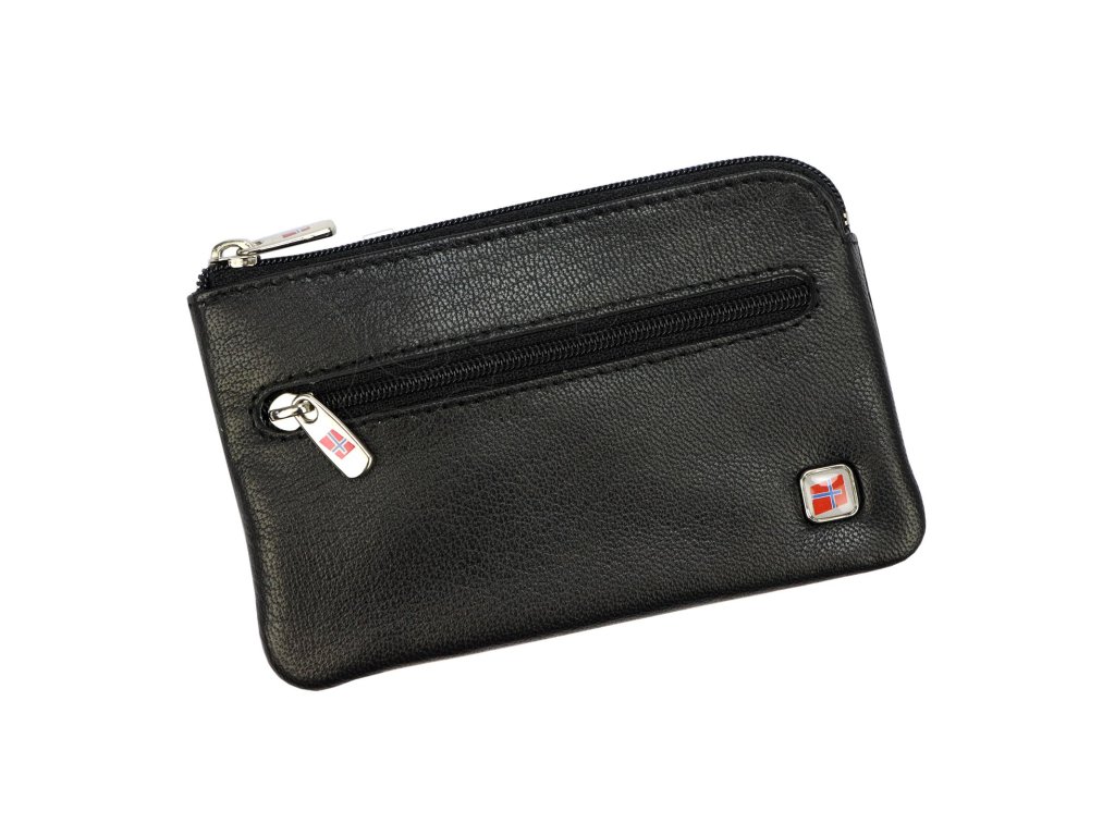 Černá kožená klíčenka se zipovou a malou zipovou kapsičkou Z