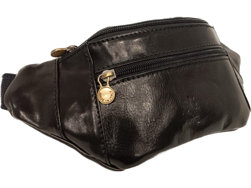 Luxusní pánská kožená ledvinka Florence s kapsičkami v černé barvě U