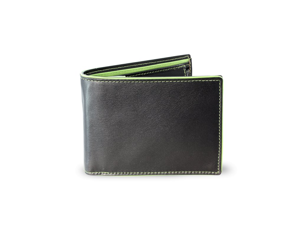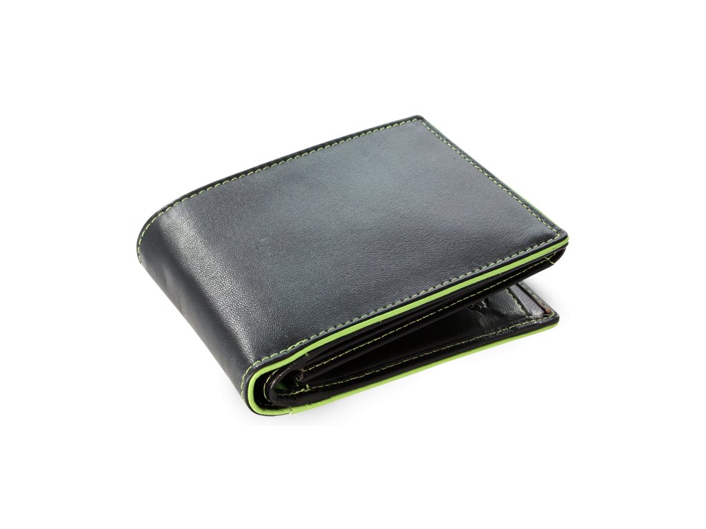2 přihrádky na bankovky, kapsa na mince, 9 kapes na kreditní karty, 2 průhledná okna, 2 skryté boční kapsy, prostřední kapsa na zip, vnitřní zápinka.