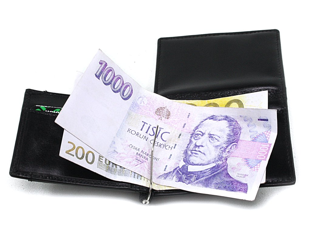 Pružina pro uchycení bankovek, 7 kapes na kreditní karty, 2 vnitřní kapsy a venkovní kapsa na mince.