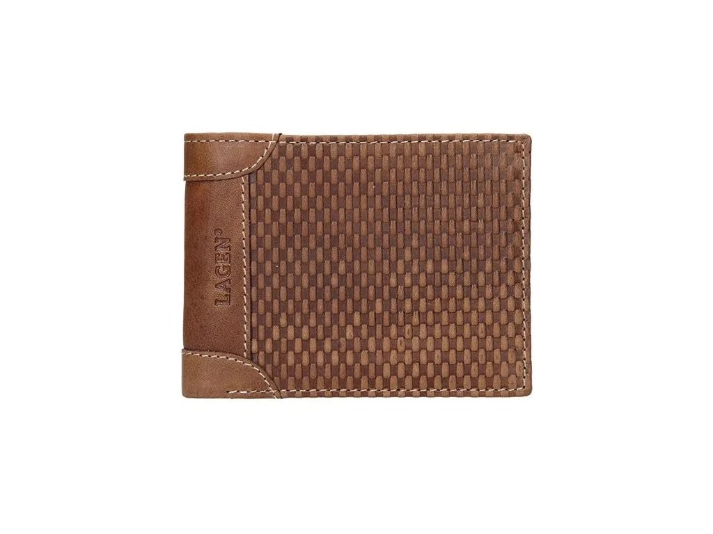 Luxusní pánská kožená peněženka Lagen se vzorem - hnědá/ cognac Z