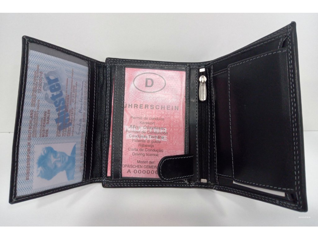 Velmi kvalitní pánská peněženka z hovězí kůže v černé barvě .