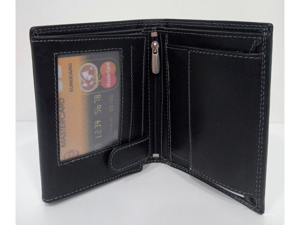 Pánská kožená peněženka černá Luka na výšku uvnitř na doklady a přepnutí ZU
