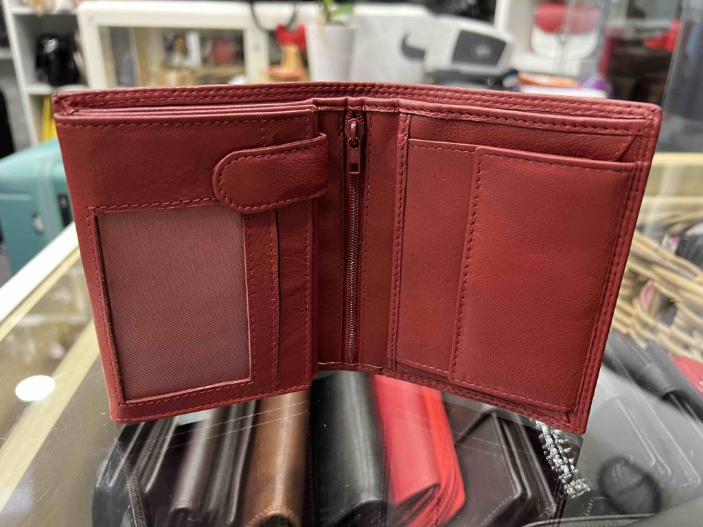 Peněženka je ušitá z pravé hovězí kůže, měkký poddajný materiál.