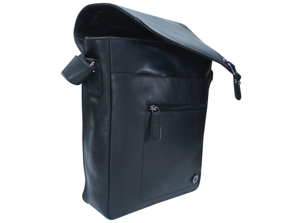 Pánská kožená taška přes rameno s klopou Green Wood v černé barvě Z