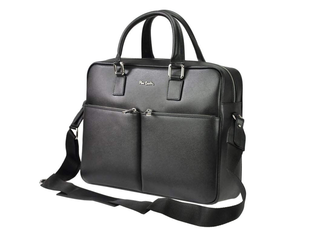Pánská kožená pracovní taška na notebook Pierre Cardin v černé barvě