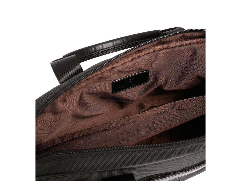 Pánská taška Hexagona Lucius nabízí elegantní vzhled, jednoduché řešení prostoru a díky zvolenému materiálu – nylonu se syntetikou i nízkou hmotnost. Ocení ji nejen IT specialisté, ale i studenti a obchodníci na cestách. Má jednu hlavní část, do které se pohodlně vleze i 15" notebook spolu s dalšími dokumenty a po obou stranách velkou kapsu se zipem. Ta čelní je navíc vybavena pořadačem na telefon, pera a doklady. Celá taška je podšita tmavě hnědou syntetickou látkou s logem značky. Pro muže na cestách, je na zadní straně aktovky vkusně zakomponován pásek se suchým zipem, pro praktické uchycení na trolej kufru. Kromě ucha je taška vybavena popruhem s logy značky a posuvným rozšířením, pro větší komfort při nošení. Rozměry aktovky jsou 38 x 7 x 26,5 cm.