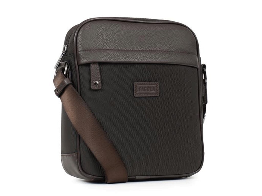 Taška Fagola Antoine je fakticky větší model tašky Romain. Kvalitně zpracovaný prvotřídní nylon, v jemné kombinaci s kůží zaručuje nízkou hmotnost a skvělou odolnost. Vnitřní prostor je podšitý lesklou syntetickou látkou s logem značky, a nabízí dvě kapsy na mobilní telefon a doklady, spolu s jednou přihrádkou do podšívky, uzavřenou zipem. Přihrádka se zipem je i vzadu na vnější straně. Řemen je nastavitelný (80 cm min / 145 cm max), doplněný tmavými lesklými sponami. Její velikost 22 x 6 x 25 cm. Je to ideální taška jak pro příležitostné, tak i každodenní nošení.