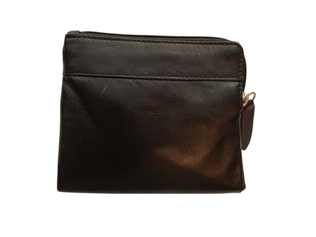 Uvnitř jsou přihrádky na papírové bankovky, přihrádky na karty, oddělená kapsa na drobné mince uzavřená zipem.