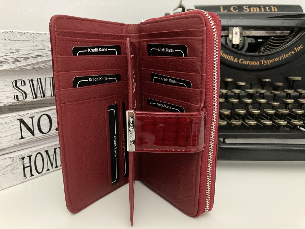 Kožená dámská peněženka z lakované kůže a uvnitř z kůže lícové.