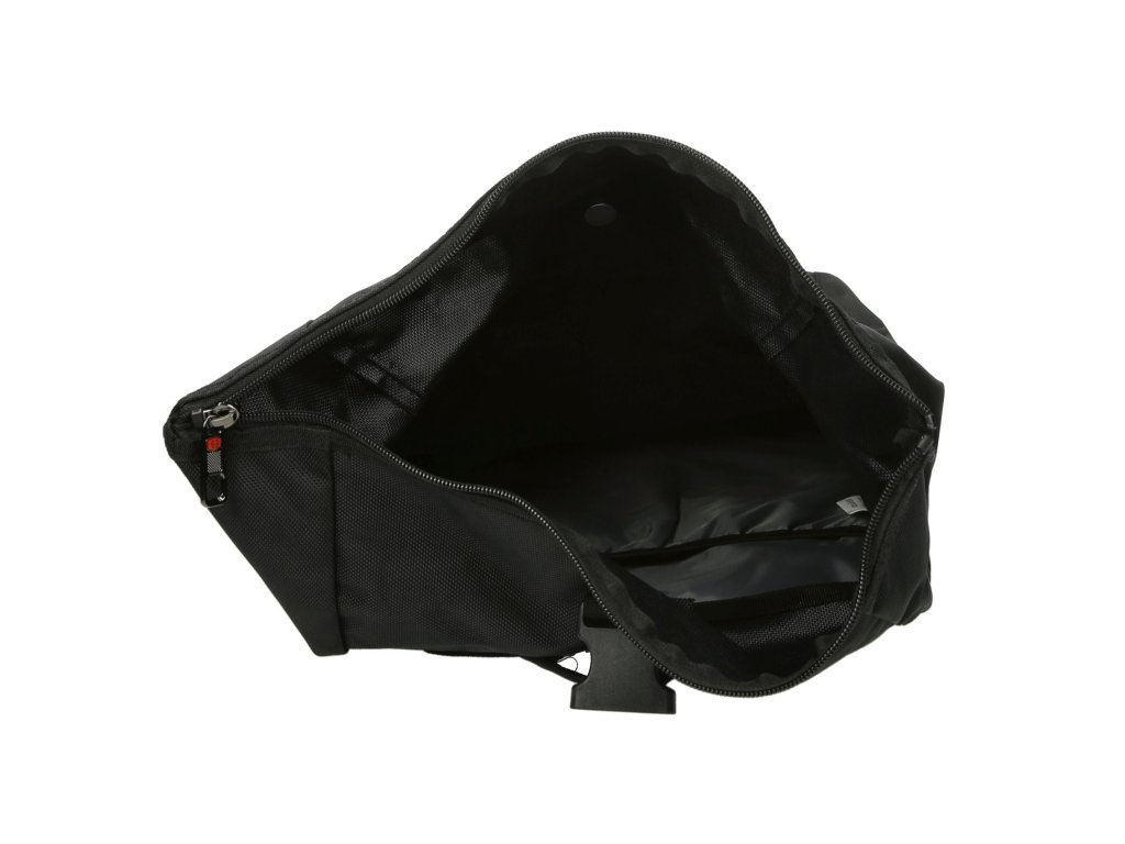 Enrico Benetti Super Shot je větší batoh v populárním provedení této značky. Prvotřídní polyesterová tkanina a super černá barva s jemnými doplňky červené barvy na logu značky. Ideální jak pro business, tak pro studenty, ušitý v momentálně nejoblíbenějším „roll-top“ provedení. Velkému vnitřnímu prostoru dominuje polstrovaná přihrádka na 17" laptop. Navíc disponuje dvěma venkovními přihrádkami na jedné i druhé straně. Ta na čelní straně má všité dvě kapsičky na doklady a telefon, ta na zádech batohu je ukrytá v jeho polstrovaných zádech. Popruhy stejně jako záda jsou polstrované a podšité vzdušnou síťovinou. Díky pásku na zadní straně se dá snadno umístit na troley kufru. Rozměry tohoto moderního batohu jsou 33 x 14 x 45 cm.
