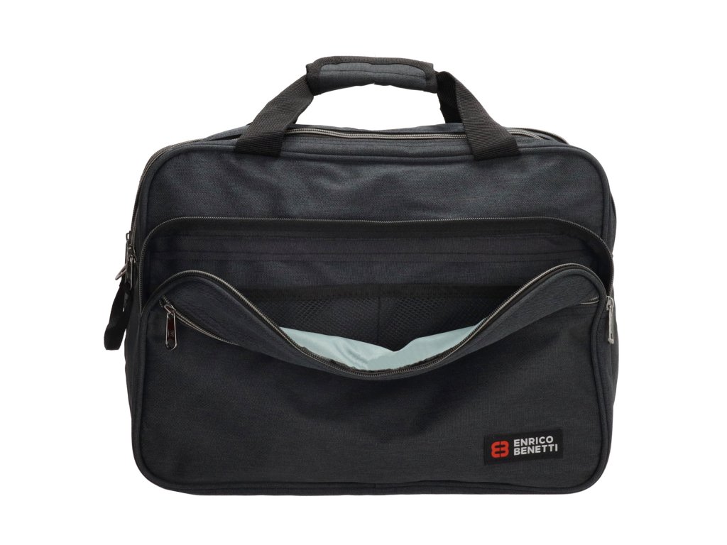 Cestovní taška Enrico Benetti Board patří do poslední ucelené kolekce cestovních zavazadel, této holandské značky. Ta je vytvořena tak, aby si v ní díky množství variant, rozměrů a barev vybral opravdu každý. Jsou vhodné jak na cesty, tak i na sportovní aktivity. Tato splňuje svými rozměry parametry "kabinového" zavazadla v letadle, a kromě spousty přihrádek, disponuje spojeným dvou zipem, takže se velmi prakticky pracuje v jejím vnitřním prostoru. Nechybí ani tunýlek se suchým zipem pro možnost umístění na troley kufru, pro pohodlné cestování. Její rozměry jsou 39 x 20 x 30 cm, objem 23 l a hmotnost pouhých 0,5 kg.