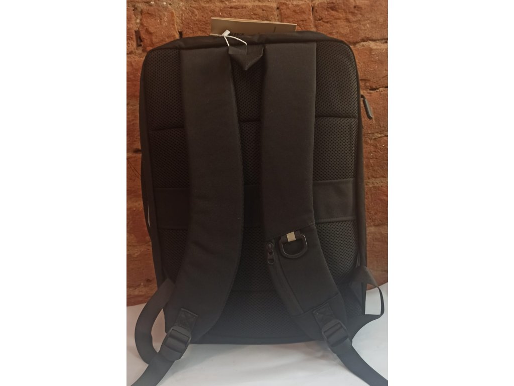 Nabízí dvě velké kapsy na zip, vně první nechybí postranní přihrádky na drobnosti, psací potřeby, klíče či mobil. Druhá má uvnitř oddělenou kapsu na notebook a gumové popruhy k přichycení např. oblečení. Součástí batohu je USB vývod a kabel.