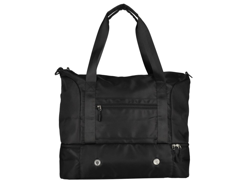 Univerzální taška Enrico Benetti Anywhere dostala svůj název podle toho, že se opravdu hodí kamkoliv. Na sport, na pláž, do školy, nebo na cesty. Je prostorná, v moderním designu, a v provedení lesklého polyesteru na sebe poutá pozornost. V hlavní části je dostatek volného místa a jsou v ní umístěny dvě kapsy, prostorná přihrádka se zipem a polstrovaná přihrádka na 13" laptop. Ta je opatřena páskem se suchým zipem. Pod hlavní části je další samostatný prostor pro obuv, po stranách přihrádky na láhev, velká přihrádka se zipem na přední straně a malá přihrádka na tunýlku na zadní straně. Ten umožnuje pohodlné uchycení na troleji kufru. Dvě ucha doplňuje odepínací popruh s nastavitelným, polstrovaným rozšířením pro příjemné nošení na rameni. Rozměry tašky jsou 47,5 x 22,5 x 44 cm, objem 47 l.